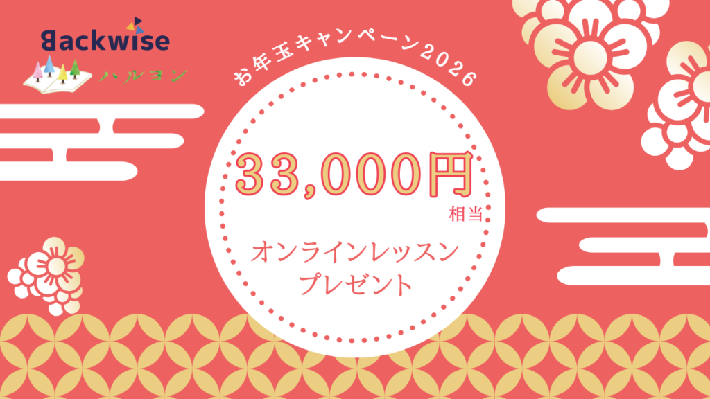 【2026年お年玉キャンペーン】2週間分(33,000円相当)のレッスンを無料でプレゼント! フィリピン留学・バックワイズの事前学習レッスン(オンラインレッスン)を担当しているハル英語4技能アカデミー(ハルヨン)より、新年の英語学習を力強く推進する特別... -