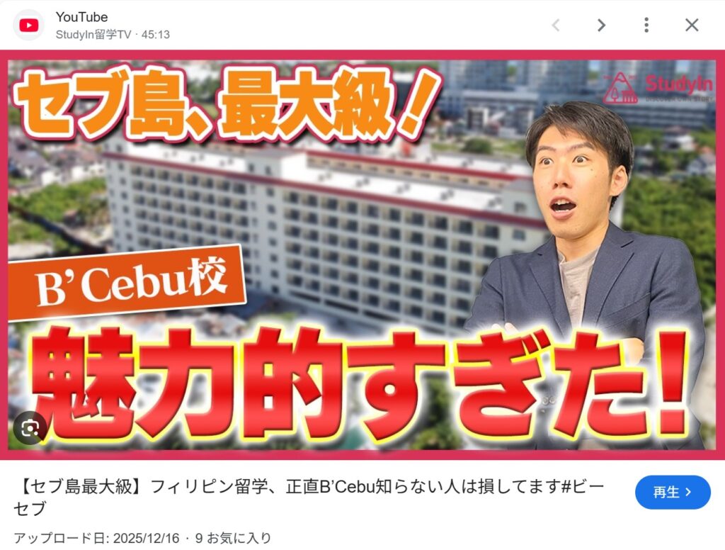スタディーイン(StudyIn) – B’Cebu校 魅力的すぎた!