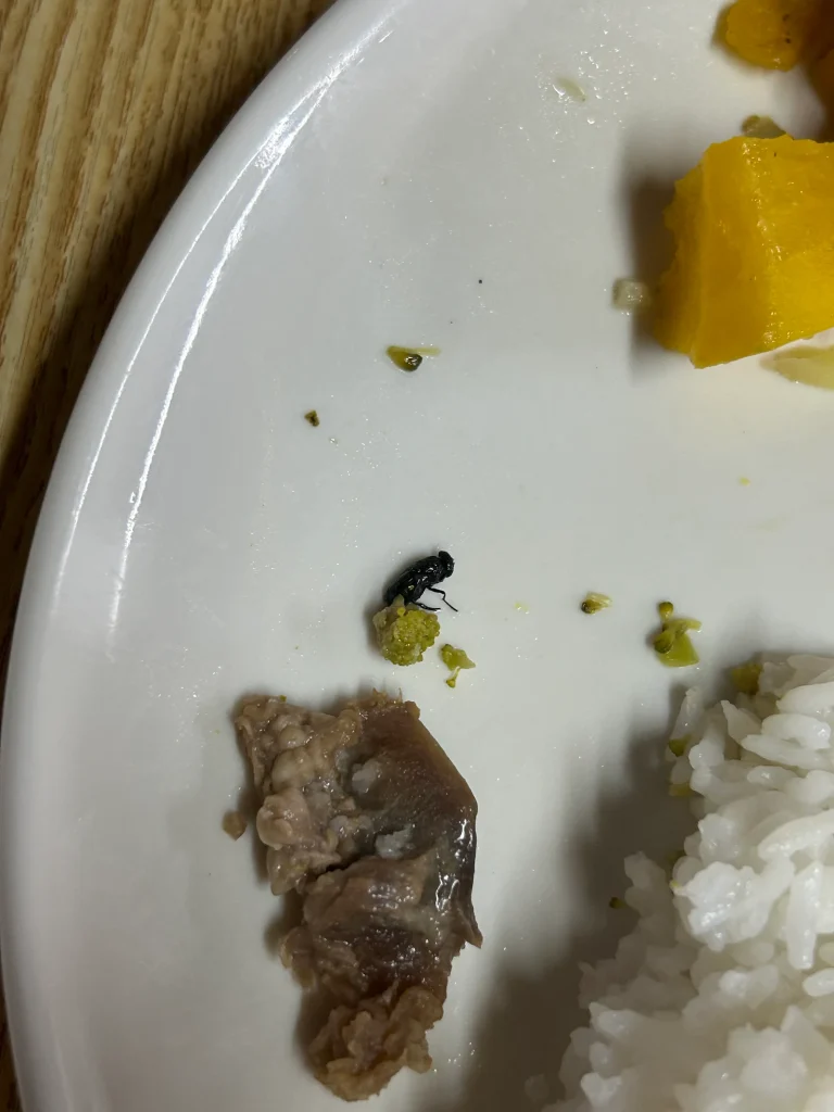 台湾の留学生の投稿、リンク先の動画を見ると食事にハエがたかっているのが分かります。