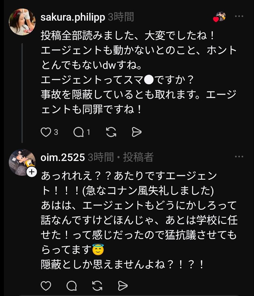 各エージェントの方も、これからの学生にここを紹介してもいいですが、事細かく説明した上で判断してもらわないと、本当に訴えられますよ。