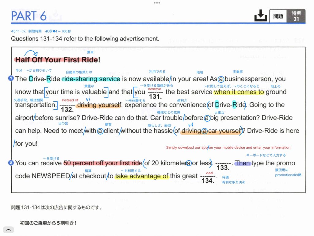 TOEIC LR試験公式問題集 Part6 英文法と長文の問題