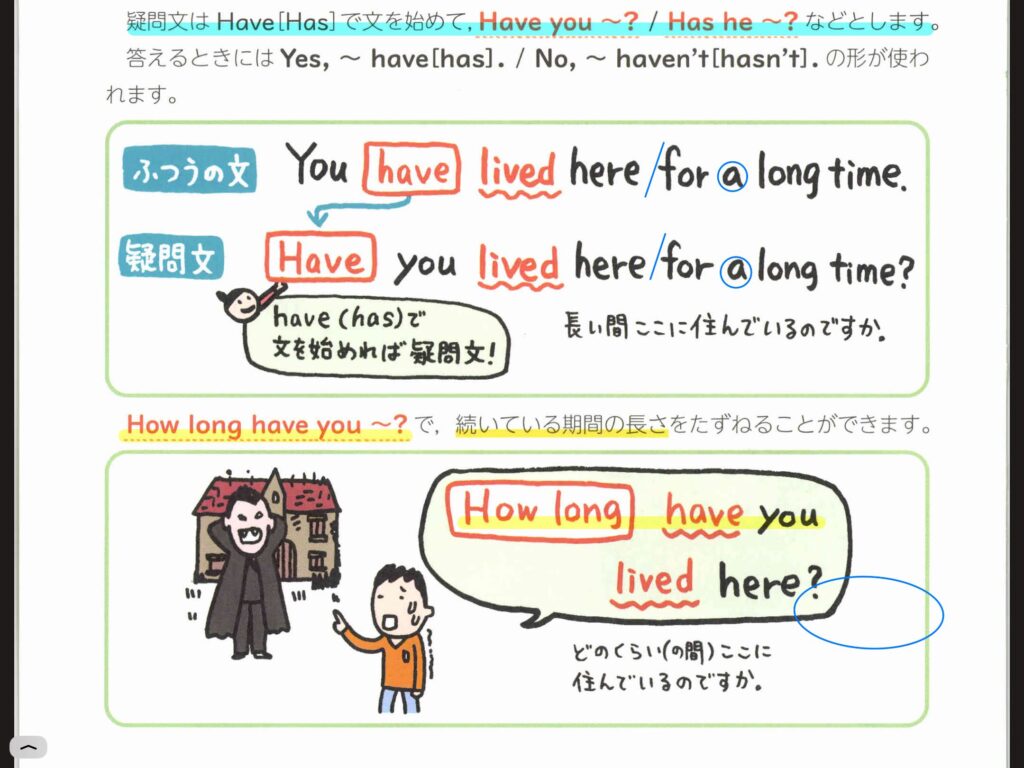 (参考画像: 中学3年の英文法で登場する現在完了形の疑問文)